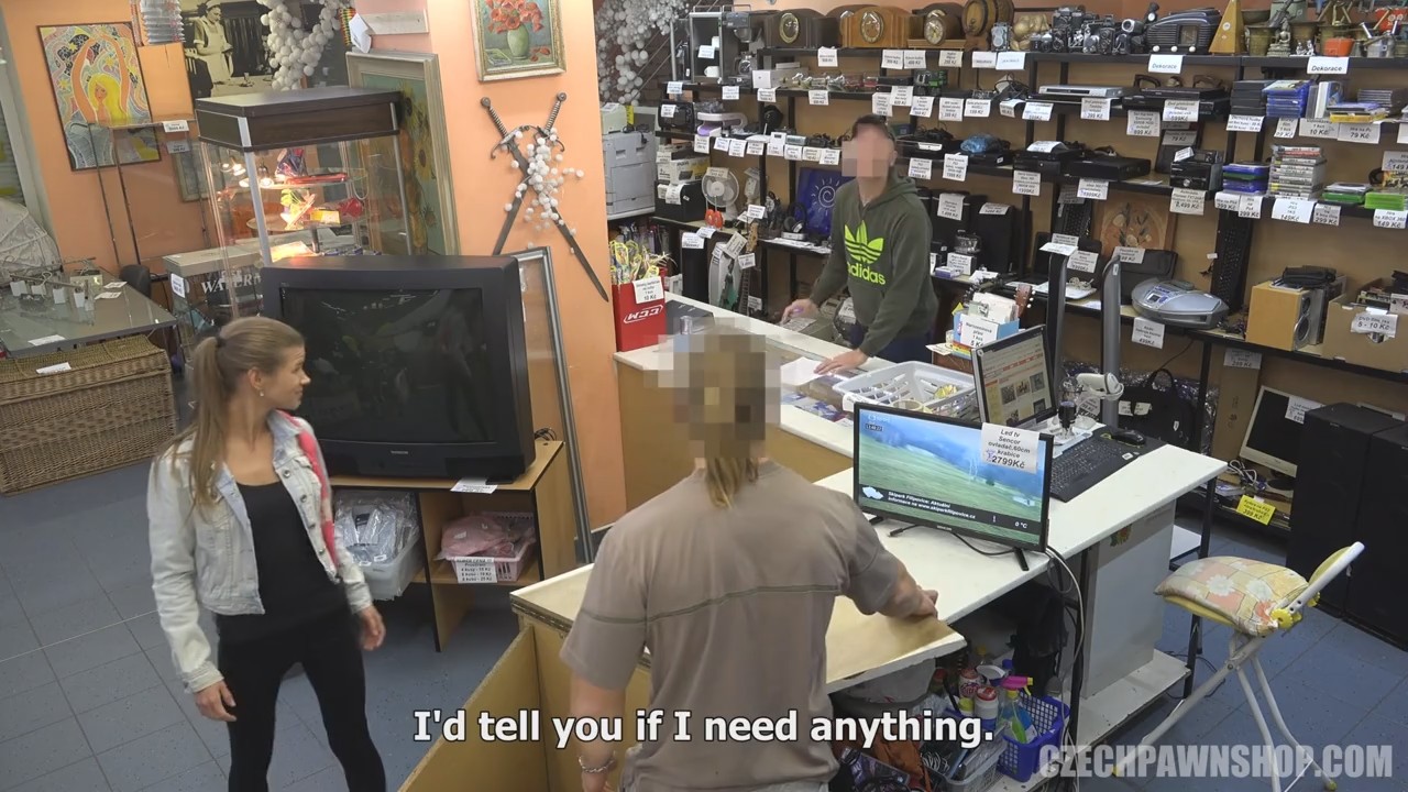 Камера, установленная в ломбарде пишет каждый рабочий день и этот не оказался исключением. Владелец с другим продавцом делает тщетные попытки познакомиться с посетительницами, но те отказываются даже на чашечку кофе. Удручающая скукота длилась недолго. Следующей зашла мрачная расстроенная девушка, которая принесла сдать неплохой фотоаппарат. Так-то он ей нужен, но жизненная ситуация первый раз привела в ломбард. Дура по пьяни разбила чужую машину BMW, взятую покататься, теперь за ремонт друзьям придется выплатить 5000 чешских крон, что очень немало. Хозяин заведения предложил решить проблему, если девушка пройдет в заднее помещение, закрытое от посторонних лиц ширмой.