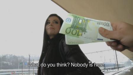 Охотник на доверчивых шкур вновь выбрался на выслеживание таковых. Буквально нескольких минут хватило чтобы найти подходящую жертву из числа красивых студенток. Одна как раз шла из колледжа домой, а на пути ей встретился этот раскидывающийся деньгами парень. За сотку евро он предложил снять куртку, еще за сто показать сиськи: такой у него эксперимент, проверять на что способны люди ради денег. Уже дошло до 500 евро за минет и, несмотря на наличие бойфренда, 25-летняя шлюшка согласилась. На этом этапе она узнала каких размеров достоинство и не стала просить доплату за проникновение длинным агрегатом.