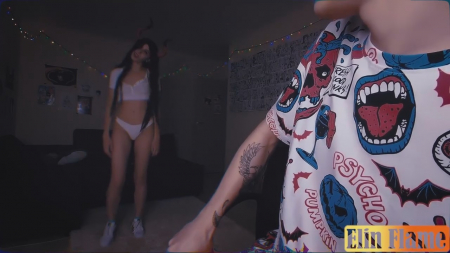 Парнишка собрался посмотреть порнуху перед сексом, а его подруга спросила хочет ли он увидеть ее новое белье? Конечно, он согласился и начал ждать. Свет был отключен и горели только разноцветные лампы, но тут электричество совсем отрубилось, а за спиной материализовалась вроде та же девушка, но что-то с ней было не так. Перемещается она телепортациями, глаза полностью черные, а из головы торчат рога. Похотливому демону нужен только секс, для этого он вселился в тело простой телки и заставил ее бойфренда кончить внутрь. Дьяволица, получив желаемый результат, как скример набросилась на жертву и сожрала.