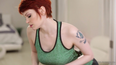 Рыженькая массажистка повседневно отнеслась к рассказу о потянутой мышце в заднице, с болью в которой пришла клиента. Для такой работы пришлось подложить мягкий подушку-треугольник под живот. Попа такая круглая, что рыжая лесбиянка не смогла устоять и, когда она сидела на спине посетительницы, сама начала раздеваться под вопрошающий взгляд, еще стала тереться своими сиськами и, наконец, сделала кунилингус, до этого все ближе подбираясь пальцами к вагине. Было очень вкусно, но еще хотелось потереться превосходным телом о другое женское тело. А там уже разогретая девка отлизала и отдрочила пальчиками короткостриженной.