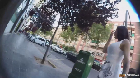 Паренек приехал на двухколесном товарище на свидание с девушкой. Они договорились вместе попить пивка на открытом воздухе, а потом отправились затариться в местный супермаркет. У него была с собой камера с самого начала, которой он снимал скрытно, но латинка оказалась такой же повернутой, как и сам парнишка. Они взяли сексуальный костюмчик, запрятались в переодевалке и занялись там грязным сексом, стараясь не издавать привлекающих внимание сотрудников звуков. Хорошо на них пивко подействовало. Но хоть за костюмчик заплатили и сразу проверили как он в деле.