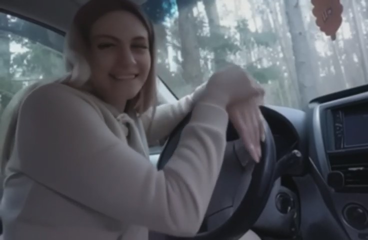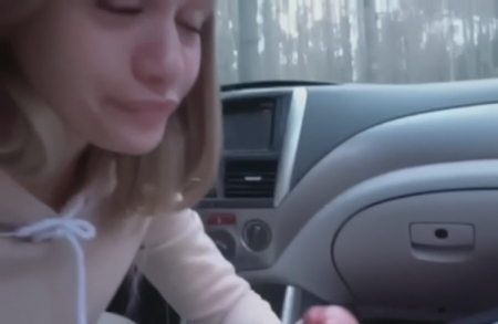 Студентка подвозит парня на Субару до колледжа, но уже становится понятно, что заехали они куда-то не туда. Чикуля останавливается посреди леса и просит раздеваться, так как скоро приедет отец и не получится так близко "пообщаться". Смущенный молодой человек в спортивках не сопротивляется, а поддается на чары симпатичной подружки, которая в тачке делает ему минет, а потом становится коленями на сидение и дает себя трахнуть в киску между очень круглых булочек, которыми она сама попрыгала стоя ногами на земле. В конце ждет еще один сос с окончанием на губки.