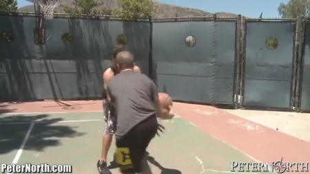 Друзья гоняли мяч во дворе и играли в баскетбол вдвоем. Игру парней нарушила очаровательная милашка, которая попросила принять ее в игру. Играть сексапильная крошка не стала в итоге, ведь цель была совсем другая - привлечь внимание мужчин к своей персоне. И, надо сказать, она очень преуспела - ведь коротенький топ и шорты, больше похожие на трусики, сделали свое дело. Брюнетка укрылась с друзьями в помещении и ребята занялись сексом втроем.