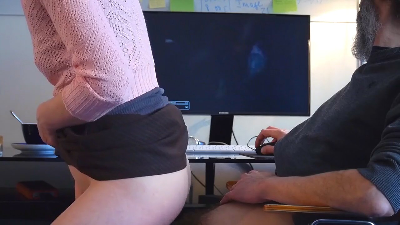 Старый извращуга взялся опять за старое, включив на экране компьютера какой-то сборник домашней порнушки с неверными женами и куколдами. Наверное, старичок собирался подрочить, но у него в доме находится еще молодая любовница, которая просто молча подошла и села на его вставший хуй, направив его прямиком во влагалище, уже достаточно увлажненное, чтобы сесть сверху без видимых сопротивлений мышц влагалища. Седовласый мужчина повернул голову в сторону видео с порнушкой, пока на его член медленно насаживалась девушка, шликающая себя рукой.