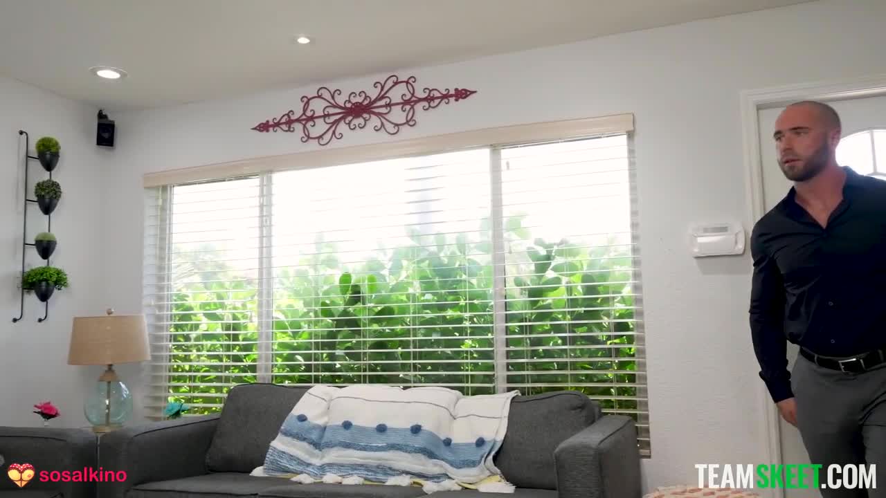 Хозяин дождался когда придет младшая сестра жены, чтобы оставить на нее детей и некоторые домашние хлопоты, пока он поедет в магазин покупать украшения для любимой. Девушка как раз только с тренировки, поэтому попросила позволить принять ванную. Делала стройняшка это очень долго - безволосый мужчина успел вернуться и поподглядывать за голой сестрой супруги. Также он помог сделать растяжку, при которой милашка показала как напряжена ее киска. В этот раз изменник отлизал ее и больше не мог выкинуть молоденькую вагину из головы. Любовники снова встретились на кухне, где полноценно перепихнулись, пока остальные в семье заняты своими делами.