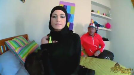 Возле учебного заведения двое друзей стояли в надежде подцепить кого-нибудь. На пути им повстречалась симпатичная мусульманка - молодая учительница. Более смелый мужчина снял для своего друга учительницу. Девушка пришла в гости к незнакомому мужчине и занялась с ним сексом, получив твердый толстый член в рот и в вагину. Оказалась скромница в постели просто настоящий ураган и затрахала мужика вовсе.