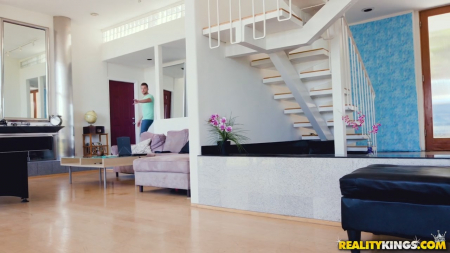 Очаровательная блондинка договорилась о съеме дома и, приехав из другого города, добралась по нужному адресу. Оглядев дом с хозяином, который провел для девушки небольшую экскурсию, милашка осталась довольна, вот только плата немного высока. И тогда, надеясь получить некоторые поблажки, девушка соблазнила молодого мужчину. Нет, не намеками - откровенно и нагло. Слегка ошалев, мужчина впрочем быстро "взял себя в руки" и воспользовался таким подарком судьбы, получив от секса (похожего на страстный ураган) невероятное блаженство.