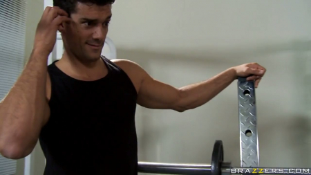 Мужик пытался выпендриться перед чикой в тренажерном зале, но так как его страховал бугай, а вес для штанги был выбран "на пределе", так что выглядел он жалко. Поэтому блондинка выбрала именно страховщика, и попросила тоже подстраховать ее в становой тяге. Но нюанс был в том, что на девчонке не было трусиков, так что она отсвечивала пиздой где не попадя прямо перед его лицом. Чувак стал неспешно подкатывать к девчонке, а та сама бросилась на его член, как только второй неудачник ретировался. И пошло-поехало - ебля прямо на тренажерах прогрессировала с каждой минутой.